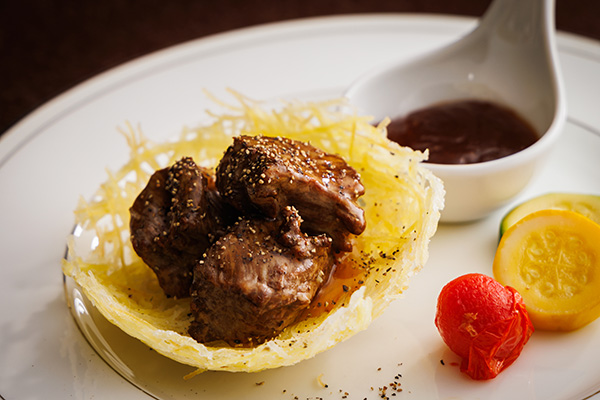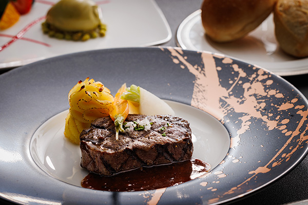 | お料理 | ・カリフラワーのババロワとオシェトラキャビア ・マーブルフォアグラカナールのテリーヌ ポルトとソーテルヌ酒のゼリー プティサラダ添え ・ホテルメトロポリタンビーフコンソメスープ トリュフの香り ・ラングーストのポワレ ソース カルディナール ・苺とルバーブのグラニテ ・国産牛フィレ肉のグリル 溶岩焼 ソース ポワブル ノア ・アールグレイとオレンジのチョコレートパルフェ ピスタチオアイス添え ・オリジナルブレッド ・コーヒー *¥20,000~メニューの一例となります。ご用途、ご希望をお伺いし、シェフがメニューを作成いたします。 |