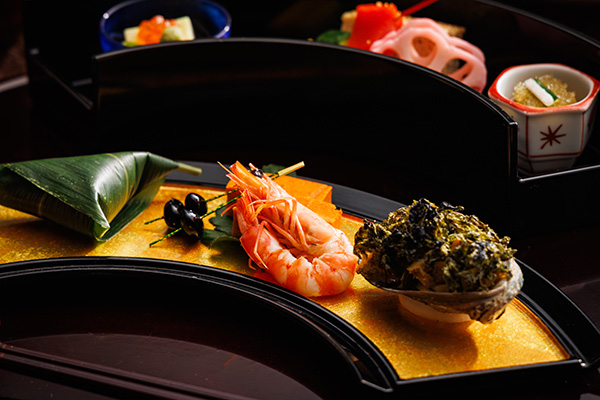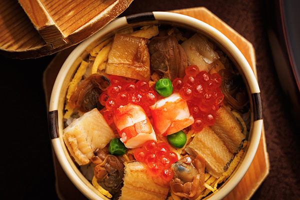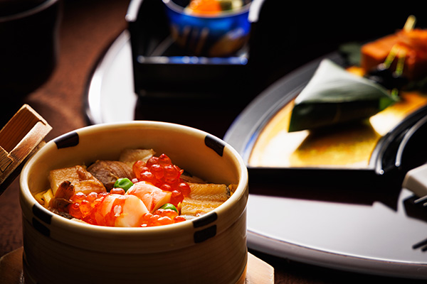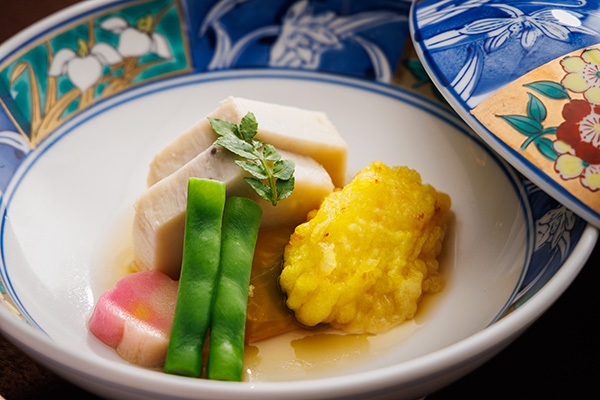 | お料理 | 前菜:玉子かすてら 海老芝煮 鮑磯焼き 花蓮根 鶏松風 笹巻麩 季節の豆腐 子持ち昆布 串/サーモン 胡瓜 黄身板 お椀:蛤真丈 冬菇椎茸 わかめ 木の芽 造り:お造り三種盛 煮物:帆立黄金煮 海老芋 南瓜 梅麩 青味 焼物:天然真鯛源平焼き 新生姜 青唐 食事:ちらし蒸し寿司 香の物 味噌椀 水菓子:季節のフルーツ |