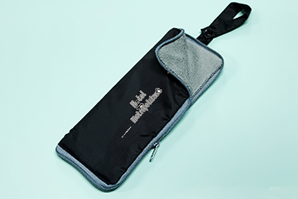 ホテルメトロポリタン限定のロゴマークをデザインしたケースです。濡れた折り畳み傘はもちろん、暑い日に結露が気になるペットボトルも収納できるマルチなアイテム。ふわふわの柔らかなタオル生地が水滴をしっかり吸収するため、鞄の中の書類や荷物を濡らしません。さらに、チャックを開いて広げれば、濡れた鞄などを拭くマルチクロスとしてもお使いいただけます。