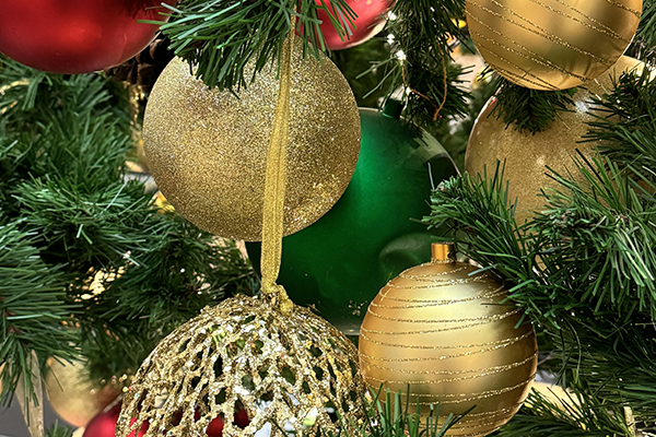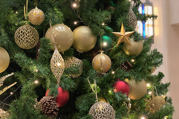 オーナメントで飾り付けした高さ約5mのクリスマスツリーがロビーで皆様をお迎えいたします。