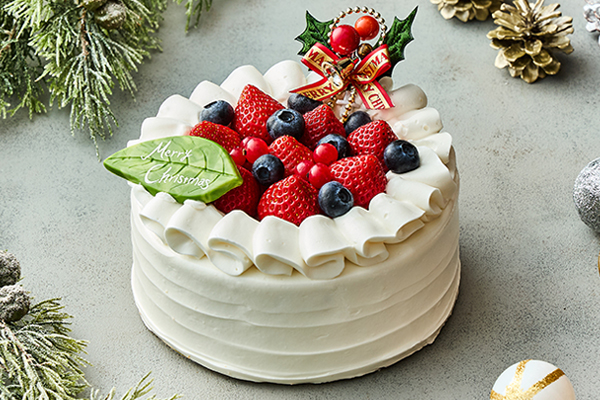 色鮮やかな苺やブルーベリーがケーキに映える、定番ながらも洗練されたショートケーキです。