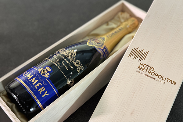 開業40周年を記念して、ホテルオリジナルデザインのラベルを施した日本酒ボトルです。日本酒は“IWC Champion Sake 2017”はじめ、国内外の数々の日本酒コンクールで受賞歴のある「南部美人 特別純米酒」を使用し、ラベルは葛飾北斎による冨嶽三十六景をモチーフにし、中心のロゴは総支配人が自ら手掛けた、ふくろうをポイントに入れるなど池袋らしさを表現した袋文字をデザインしました。贈答用の箱が付いているため、大切な方への贈り物や自分のための特別な1本としてご利用ください。