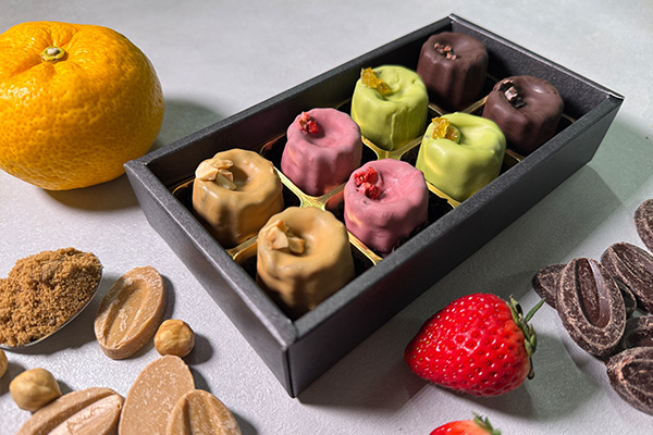 ヘーゼルナッツの食感がアクセントになったブラウニーの上に、甘さ控えめのベリーとチョコレートのムースでレモンクリームを包み、すっきりと爽やかな味わいに仕上げました。ピンクのリボンでおしゃれをしたSuicaのペンギン部分はアーモンド風味のミルクチョコレートムースになっており、バレンタインらしくしっかりチョコレートをご堪能いただけます。