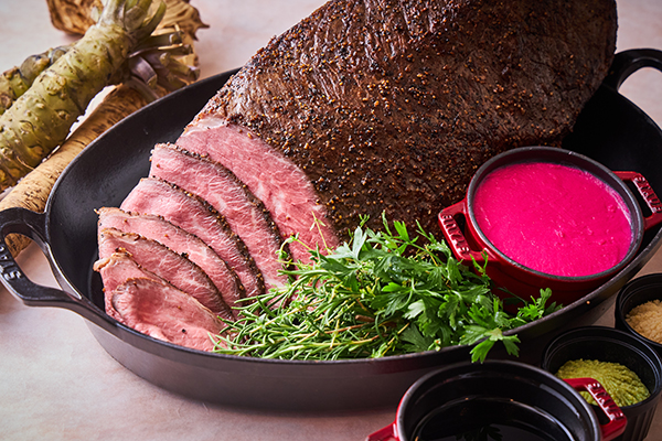「クロスダイン」開業当時からのビュッフェ定番料理「ジューシーローストビーフ低温調理 64℃仕上げ」はじっくり低温で時間をかけて焼き上げているので肉の旨味が口の中にジュワッと広がります。また、ホテルならではの「ビーフストロガノフ」や「メトロポリタンカレー」はぜひご賞味いただきたい一品です。その他ピザ釜で焼き上げた、焼きたてのナポリ風ピッツァや目の前で仕上げたパスタ、オリジナルドレッシングにてお召し上がりいただけるサラダやお酒に合うオードブルなど手間暇かけたホテルの味をお届けします。