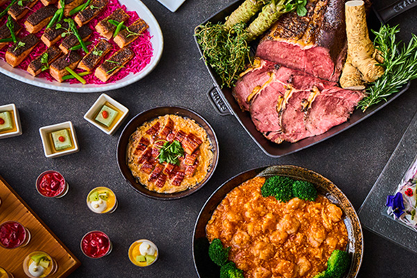 スパイシーな味わいがクセになるサーモンのロースト、栄養価が高く滋養強壮に効果がある“うな卵”、海老の風味と辛さを調和させた海老のチリソース煮など、和・洋・中・スイーツの専門シェフとパティシエが腕を振るうスペシャルメニューをご用意いたします。