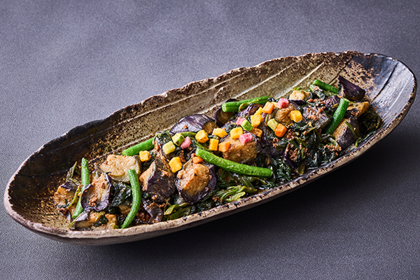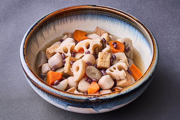 富山県の郷土料理からは、「根菜のいとこ煮」と「よごし」をご用意。「いとこ煮」は、小豆と根菜などの野菜を一緒に煮込んだ、素朴ながらも滋味深い一品。冬場の栄養補給にもぴったりで、今もなお地元の人々に愛されている一品をご堪能ください。「よごし」は、茹でた野菜を味噌と和えて炒めた料理です。夜に作り置きをして翌朝に食べることから「夜越し」と呼ばれ、肉味噌の甘辛い味がやみつきになる美味しさです。