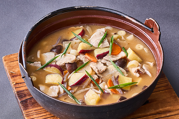 日本料理からは、石川県の郷土料理「めった汁」をご用意いたします。石川県産「五郎島金時」、大根、人参などの根菜類にこんにゃくや長葱を加えた、具だくさんで心も体も温まる、食べ応え満点の一品です。