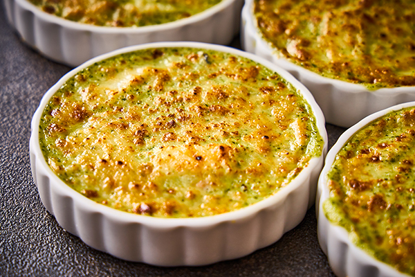 コリコリした歯ごたえの“バイ貝”と濃厚で上品な甘みの“甘海老”に、ガーリック風味のブルギニヨンバターで焼き上げました。魚介の味わいとガーリックやハーブ、バターのコクが相性抜群な一品を、ぜひ熱々の状態でお召し上がりください。