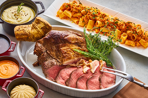 「クロスダイン」が誇る伝統と人気のメニュー「ジューシーローストビーフ低温調理 64℃仕上げ」はお客さまの目の前でお取り分けいたします。その他にも、和・洋・中・スイーツのバラエティ豊かなメニューを心ゆくまでご堪能ください。会社の同僚やご家族、ご友人などのお集まりにぜひご利用ください。