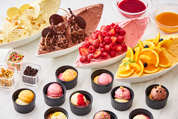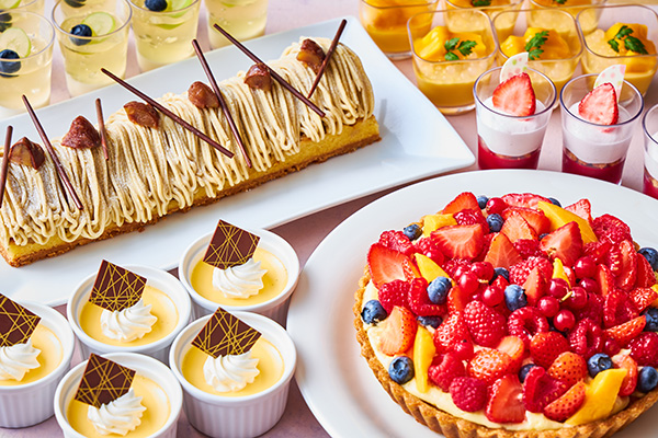 ホテルのパティシエが作る焼き菓子、フェアごとに変わる特製プリンや和・洋・中それぞれのスイーツなどお子様からご年配の方まで幅広くお楽しみいただけるメニューを取り揃えました。また、季節のジェラートやホテルメトロポリタン伝統のコクと深みのあるバニラアイスクリームも提供いたします。
