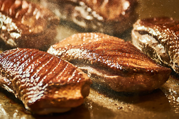 味噌のコクと甘みが、香ばしく焼けた合鴨の旨みを最大限に引き立て、中はふっくらジューシーに仕上げました。焼豆腐田楽と一緒にお召し上がりください。