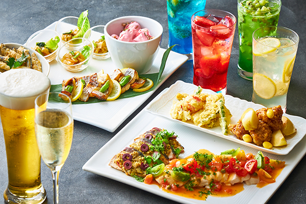 | フリーフロードリンク(120分) | ■スタンダード(¥2,800)■全27種 瓶ビール(キリン 一番搾り)/ワイン(赤・白)/ウイスキー/サワー各種/カクテル各種/ローアルコールカクテル各種/モクテル各種 ■プレミアム(¥3,800)■全37種 生ビール(サントリー ザ・プレミアム・モルツ)/ワイン(スパークリング・赤・白)/日本酒/焼酎/ウイスキー/フルーツ入りサワー各種/カクテル各種/ローアルコールカクテル各種/モクテル各種 |