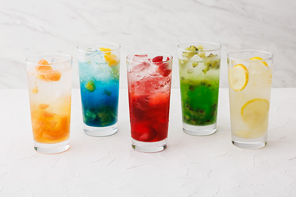 <ピンクグレープフルーツ/オレンジ/ストロベリー/キウイ/レモン>