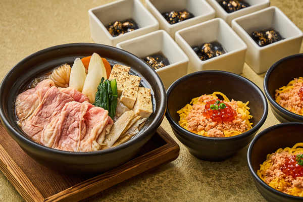 日本料理「花むさし」や四季彩茶寮「旬香」からの前菜や小鉢も含めたお料理をはじめ、揚げたての天麩羅や貝をふんだんに使用した特製“海鮮貝だし汁”で食べる野菜や仔羊のしゃぶしゃぶなど、スタッフがその場で調理パフォーマンスを繰り広げます。ランチタイムには本日の焼き魚やそば・うどん、日替わりでねぎとろ丼やちらし寿司などを食べやすいサイズにした“クロス小どんぶり”をご用意しました。またディナータイムには握り寿司などが登場します。
