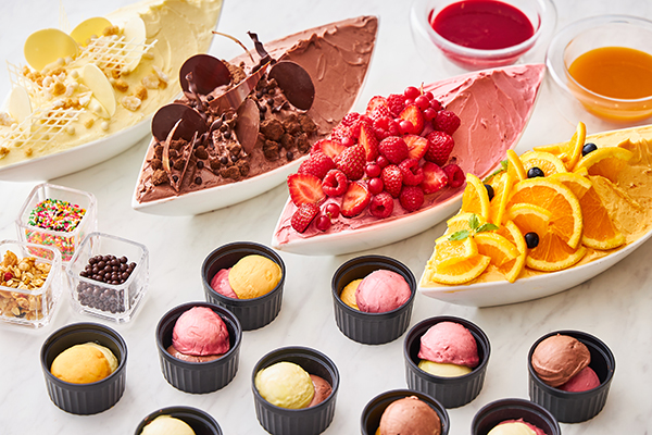 ホテルのパティシエが作る焼き菓子、フェアごとに変わる特製プリンや和・洋・中それぞれのスイーツなどお子様からご年配の方まで幅広くお楽しみいただけるメニューを取り揃えました。また、季節のジェラートやホテルメトロポリタン伝統のコクと深みのあるバニラアイスクリームも提供いたします。