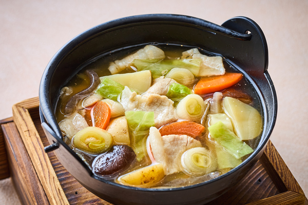 日本料理からは、脂の旨みと自然な甘みが味わえる「豚バラ肉」を、春の食材の「山菜」とともに、風味豊かな醤油ベースの出汁でじっくりと煮込んだ「豚バラ山菜鍋」をご用意いたします。山菜のほろ苦さとシャキシャキとした食感と豚肉の旨みが凝縮された、春の訪れを感じるどこか懐かしい味わいの一品です。