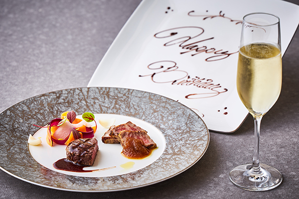 大切な人とのひとときにふさわしい、上質な美食を味わうアニバーサリープラン。乾杯には、生き生きとした繊細な味わいが魅力のシャンパン「ポメリー ブリュット・ロワイヤル」または、ノンアルコールをご用意。ランチ、ディナーともに季節感あふれる3つのコースからお好みのメニューをお選びいただけます。きらめくシャンパンとともに始まる特別な一日を、ホテル最上階からの夜景とともにご堪能ください。
