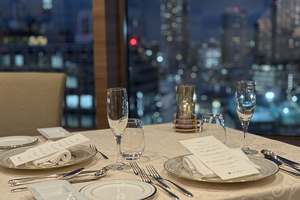 邸宅風の落ち着いた雰囲気が特徴の会場でディナーはいかがでしょうか。ホテル最上階からの夜景と贅沢なクリスマスディナーをご堪能ください。12月24日・25日には、特別プログラムによるジャズ演奏もご用意しております。組数限定のため、ご予約はお早めに。