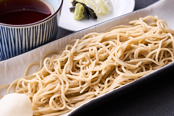食事は福井県の郷土料理2種類からお選びいただけます。冷たいそばに辛みのある大根おろしと合わせて食す“越前おろしそば”と、魚を塩漬けにし米ぬかに長期間漬け込んで熟成させる伝統料理“へしこ”のお茶漬けのどちらかを、その時の気分に合わせてお選びください。