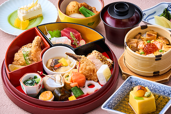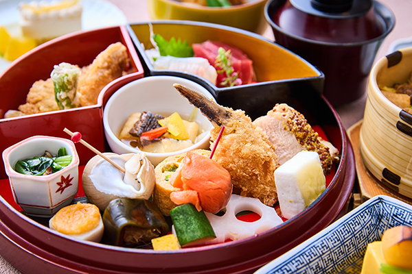 旬の素材をふんだんに盛り込み、彩り美しく見た目も華やかなランチ御膳です。