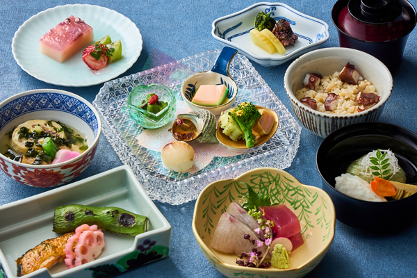 鰹やかんぱち、黒豚、銘柄鶏、さつま芋など、多彩な農水産物や加工品などおいしいものの宝庫である鹿児島県のさまざまな食材を詰め込んだ、本格的な御膳をご堪能いただけます。