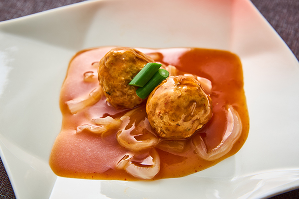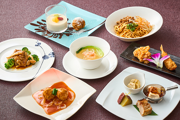 旬のふぐは唐揚げにしてご用意いたします。素材の味を活かした淡白でさっぱりとした味わいに、衣のサクッとした食感とふんわりとした身の組み合わせが絶妙な一品です。“甜醤油(テンジャンユ)”をベースにした甘辛いソースで和えた四川和え麺をはじめ、食事は3種類から各々お好きなものを自由にお選びいただくことができます。