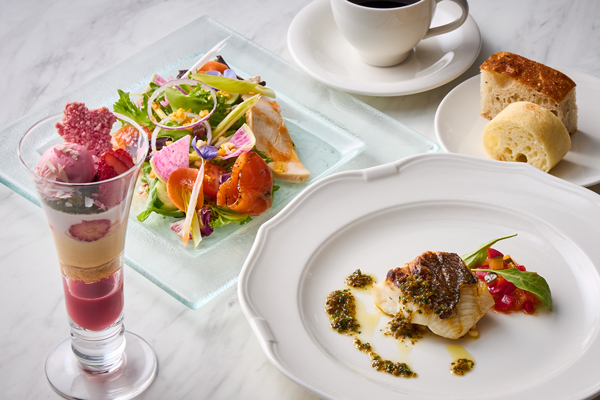 サラダプレート、メイン料理、季節のパフェをお楽しみいただけるランチコースです。