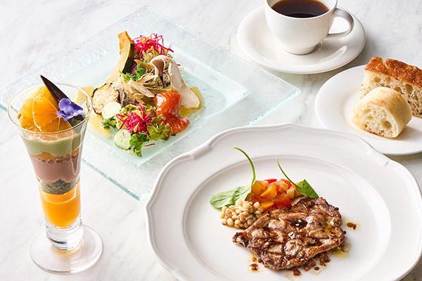 サラダプレート、メイン料理、季節のパフェをお楽しみいただけるランチコースです。