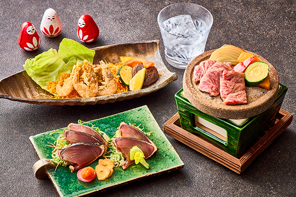 季節のおすすめのほか、素材がもつ旨みをいかした炙り・炭火&鉄板焼き料理をご用意しています。