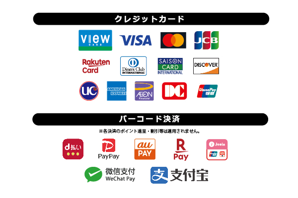 (JRホテルメンバーズポイントとクレジットカード、バーコード決済、現金での精算が可能です。)