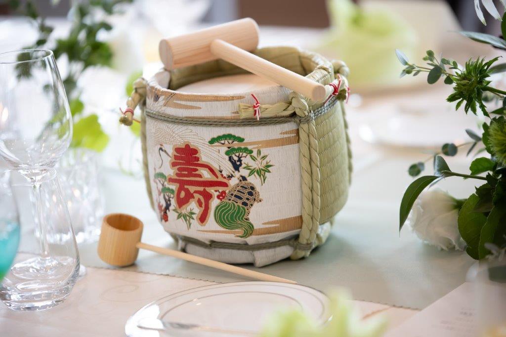 お食事会では「ミニ樽」で鏡開きの演出を