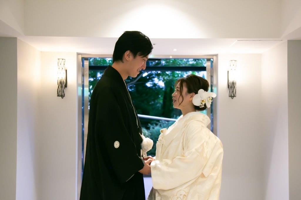 挙式の前に、ホテルの正面玄関の竹林でお写真撮影を行いました