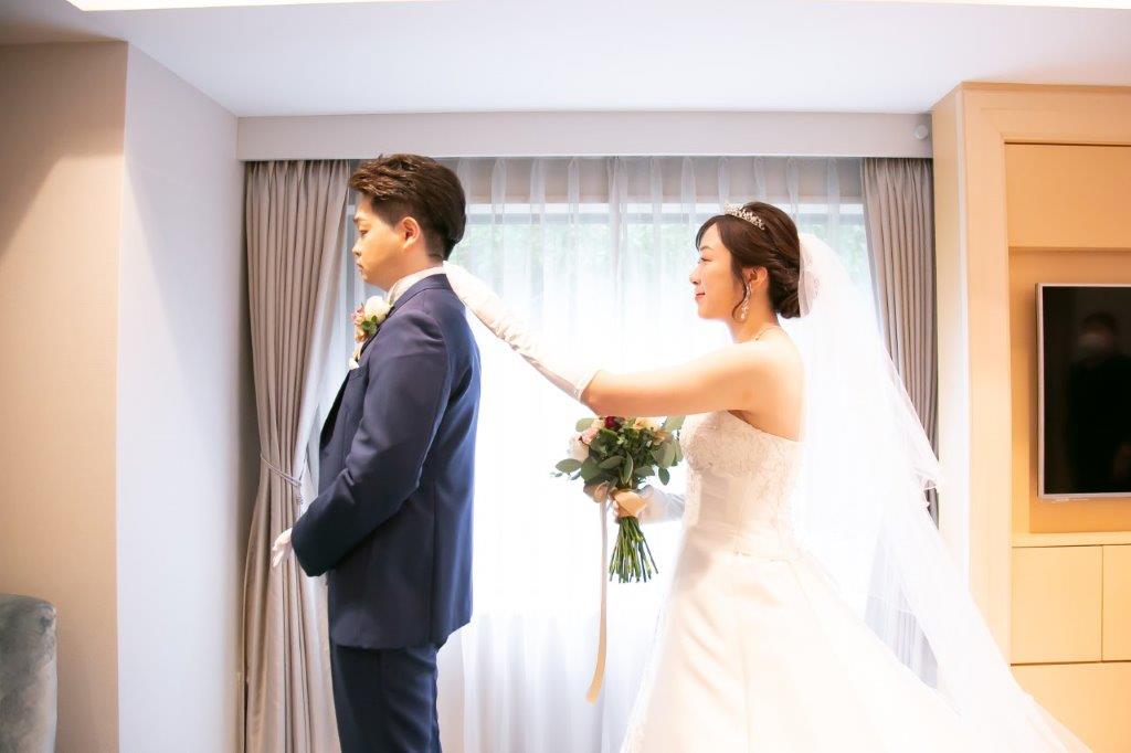 1日1組限定の「ブライズルーム」で一緒にお仕度をなされたおふたり