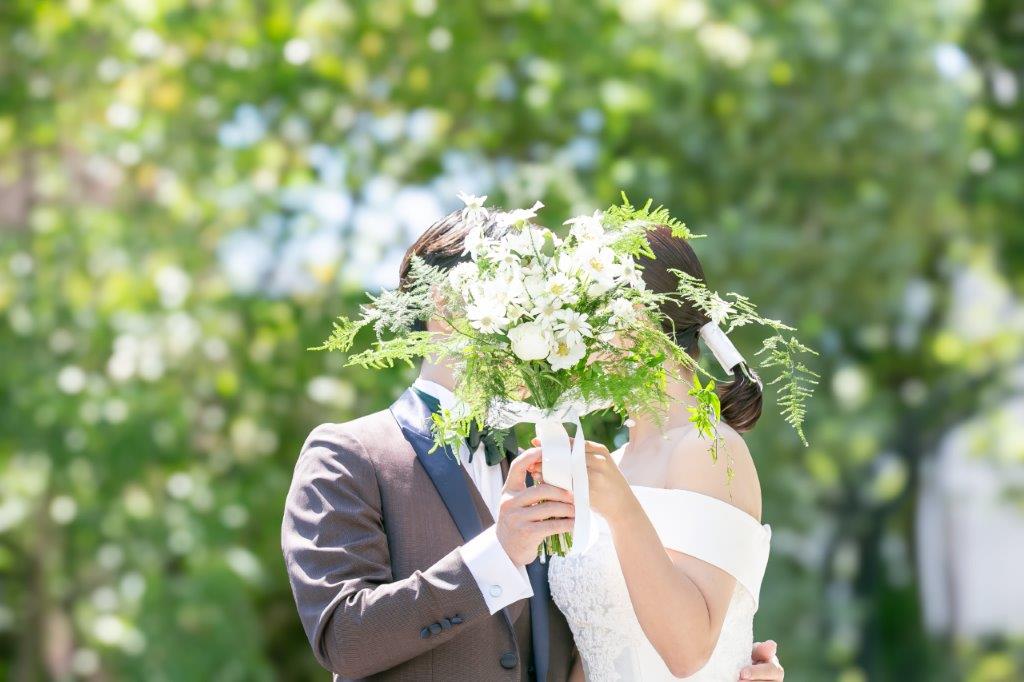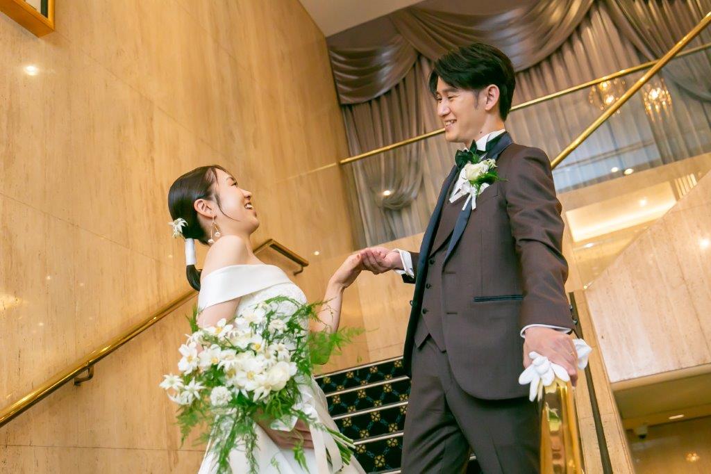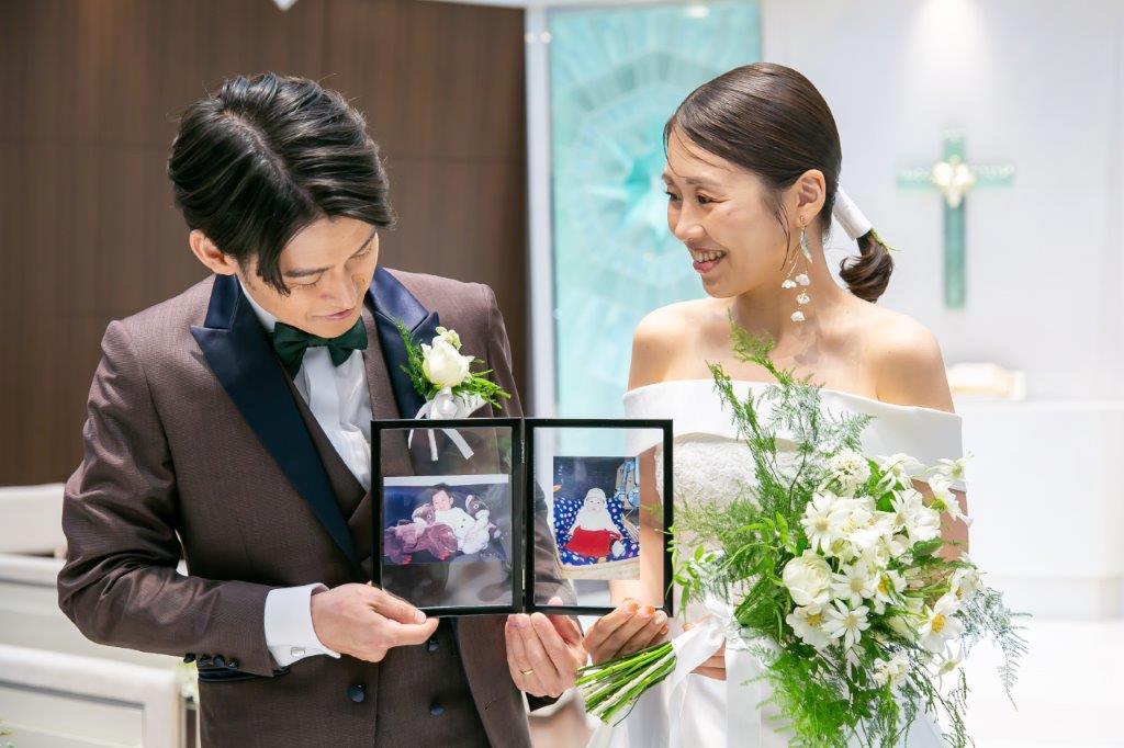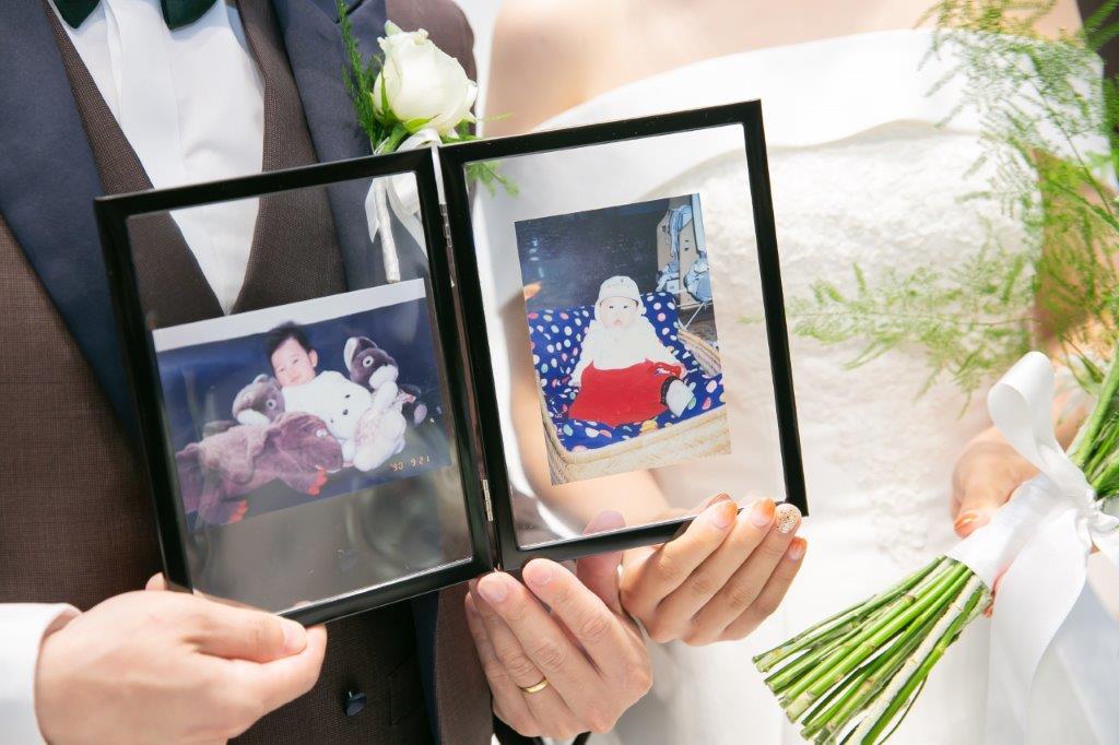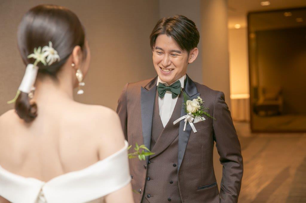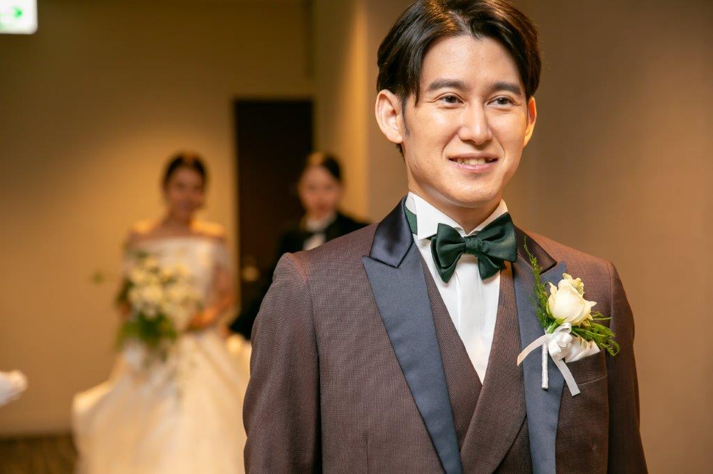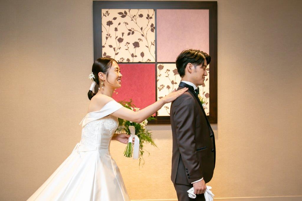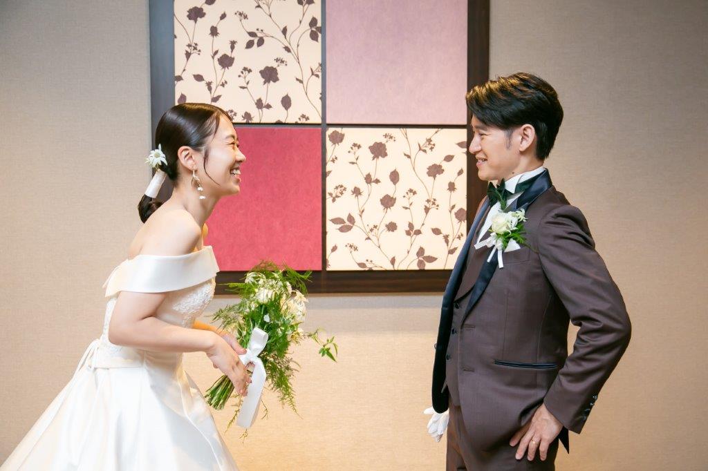 親御様に見守られながら、ホテルのフォトスポットで撮影をされたおふたり