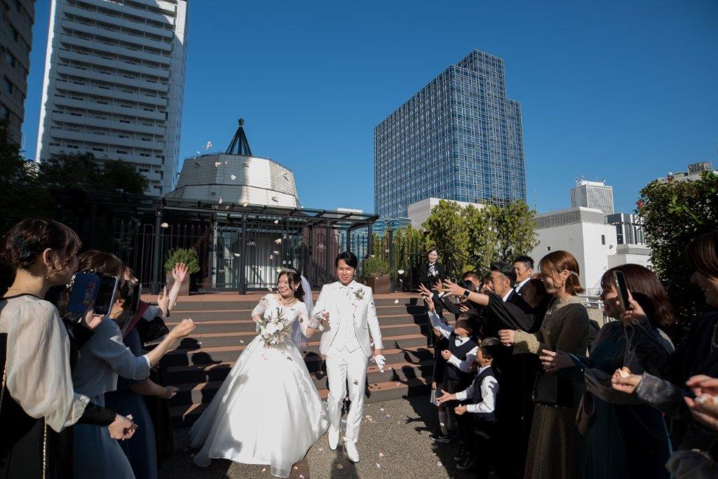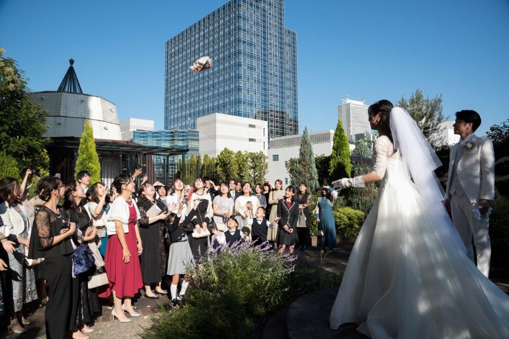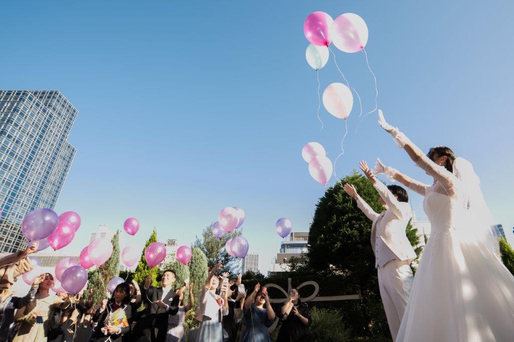 フラワーシャワー、トスブーケ、バルーンリリースでゲストの皆様と楽しい時間をお過ごしになりました