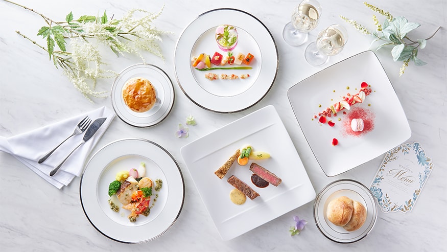 和洋中のそれぞれの専門シェフやオリジナルブレッドを焼き上げるシェフブーランジェに専属のパティシエが紡ぐコース料理をご用意。